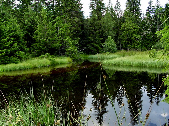 Ce lac est en partie recouvert et qui continue à se recouvrir par une tourbière,
